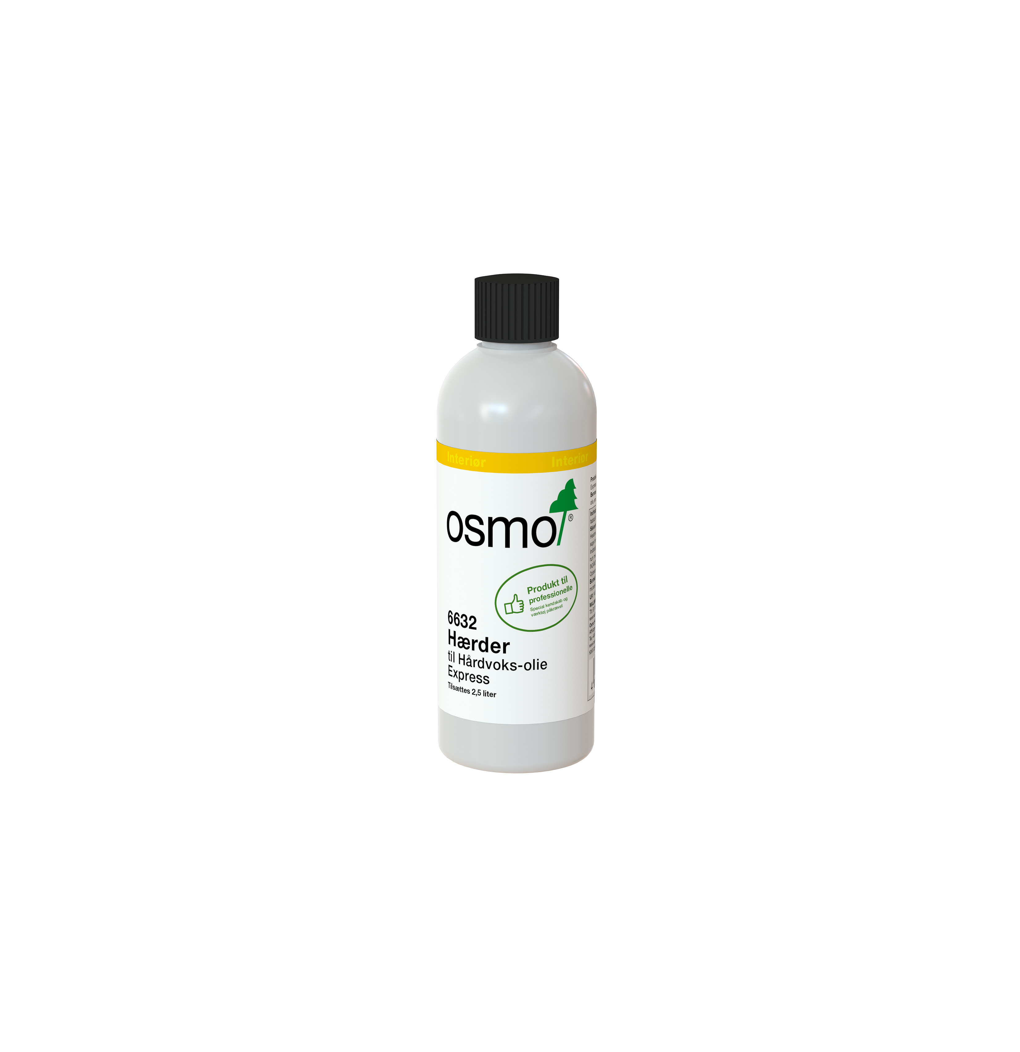 Hærderen som sælges separat er til professionelle, der er vant til at arbejde hurtigt, og ved hvad der kræves for arbejde med denne type produkter. Indholdet i 150 ml pakken blandes med 2,5 liter Osmo Hårdvoks-olie Express.