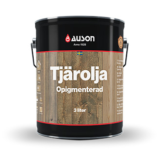 Auson Ofärgad Tjärolja framhäver träets naturliga kulör och ådring, samtidigt som den ger samma skyddande egenskaper och hållbarhet som de pigmenterade. Oljan är mörk vid målning men kulören försvinner efterhand som UV-strålarna bryter ner trätjäran på ytan som blir naturligt grå, och skyddet finns kvar i träet.